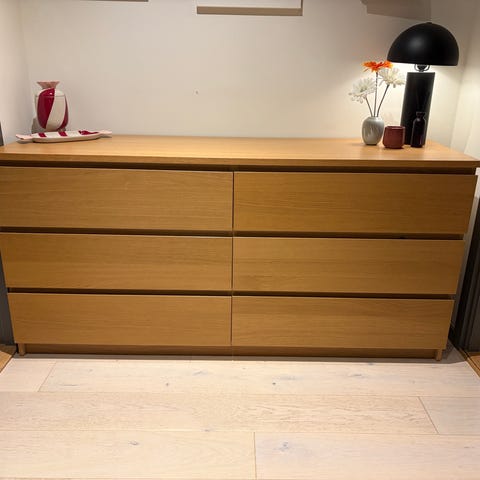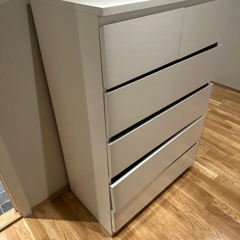 (Holdes av) Malm kommode (4 skuffer) gis bort (åpning i nederste skuff)