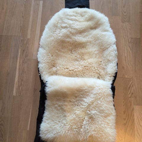 Ble nesten ikke brukt her da den ikke passet i den sesongen jeg hadde barn. Fin vognpose med fleecefor, passer fint til høst/vår eller milde vintre.