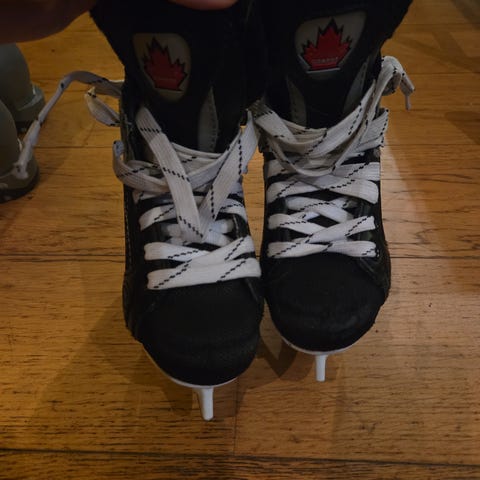 Barneskøyter for ishockey i svart farge. Skøytene er designet for barn og har snøring for justering og god passform. Passer til bruk på is for hockeyspill og trening.