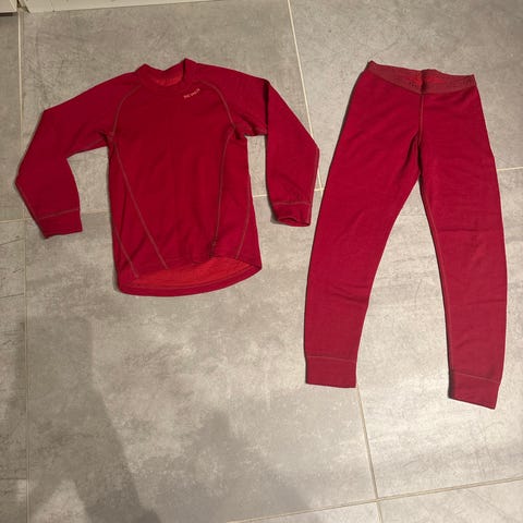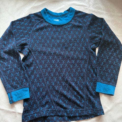 Devold Multisport undertøysett for barn i størrelse 10 år. Sett består av overdel og underdel i blå og mørk blå farge. Materialet er 100% merinoull.