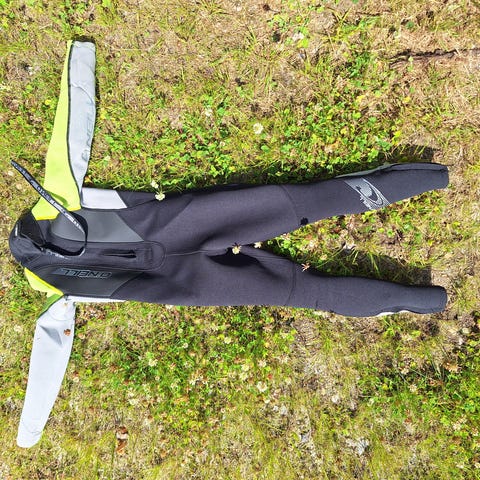 O'Neeon(Europris)våtdrakt for barn i neoprenmateriale med flerfarget design i svart, grått, gult og lilla. Drakten har lange ermer og glidelås bak for enkel påkledning. Egnet til vannsport og aktiviteter i kaldt vann.