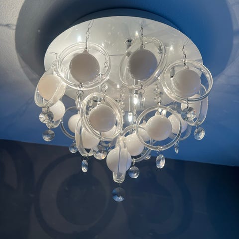 Taklampen gir varmt lys.