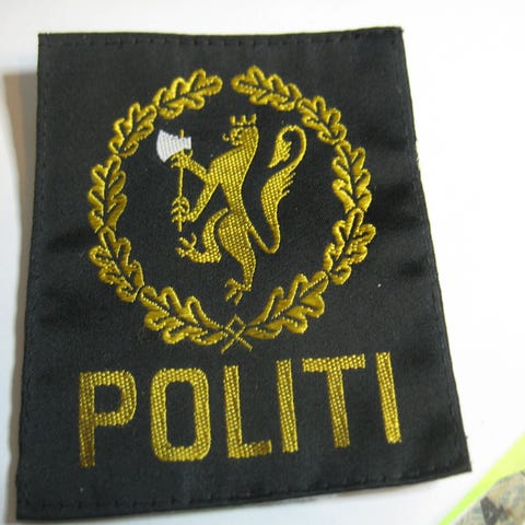 Politi armbind med metallspenne og tekstildeler med teksten "og "POLITI". Armbindet er svart med hvite knapper og har en metallspenne med norsk riksvåpen. Produktet inkluderer også en bok med historisk innhold om politistyrkene i Sverige i perioden 1943-1945.