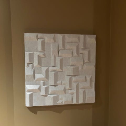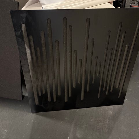 Lydabsorbenter av filt som demper lyd. Kan henges på vegg, og da kan samtidig lydabsorbentene brukes som oppslagstavler. Jeg har ikke hengt dem opp på vegg, så har ikke klart å finne borrelåsene som kan brukes. Størrelsen er på 60x60 centimeter :)