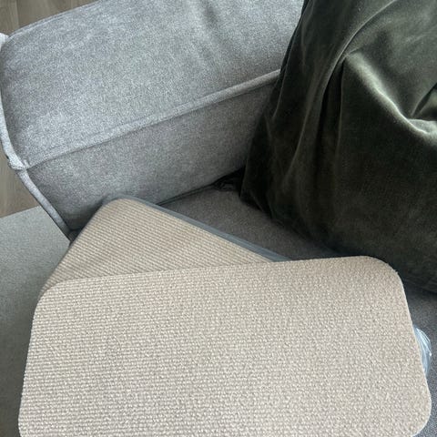 Lydabsorbenter av filt som demper lyd. Kan henges på vegg, og da kan samtidig lydabsorbentene brukes som oppslagstavler. Jeg har ikke hengt dem opp på vegg, så to helt ubrukte borrelåser medfølger. Se bilde.