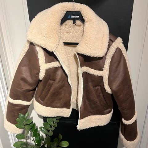 H&M Annet yttertøy i størrelse S for dame, farge brun. Jakken er laget av fuskepels, med mykt og varmt materiale både på innsiden og utsiden. Passer til bruk som yttertøy ved kaldt vær.