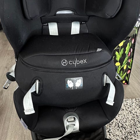Cybex Barnesete i størrelse 18. Setet er designet for barn og har sikkerhetsfunksjoner tilpasset barnets størrelse.