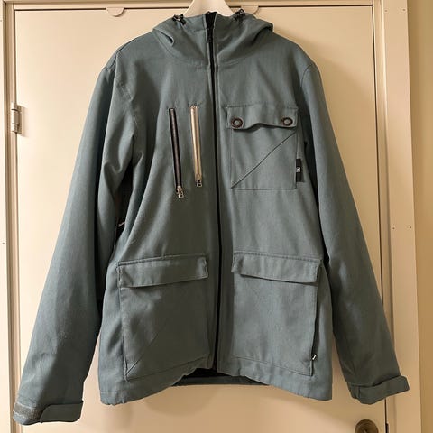 Størrelse 52, 80/20 dun, avtagbar hette.