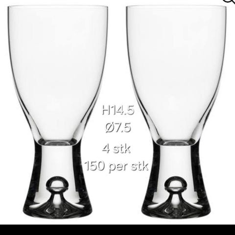 Glassene er pent brukt uten synlig slitasje. Det følger med ett glass med et ørlite nag (se bildet) ved samlet salg.