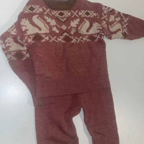 Ullsett fra Reflex i fin burgunderrød farge. Pent og lite brukt, men det er et lite merke på tightsen (se bilde).