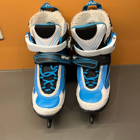 Graf justerbare skøyter for barn i størrelse 27 - 30. Skøytene har spenner for god passform.