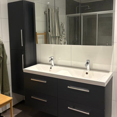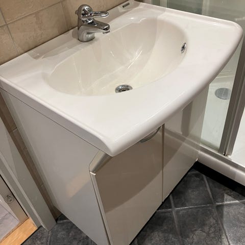 Pent brukt baderomsinnredning – WC, servant m/benkeplate og speilskap