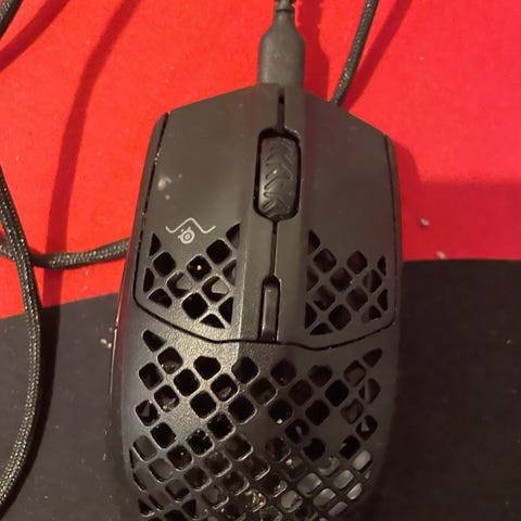 SteelSeries Rival 600 gamingmus med USB-kabel, svart farge og RGB-belysning.