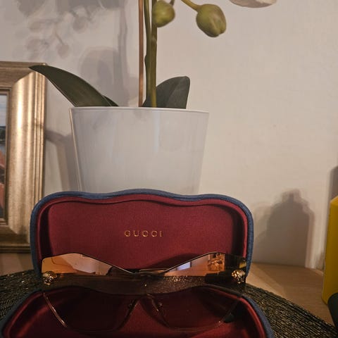 Vintage Dior Flash solbriller i nydelig dus rosa/lilla og gull. Ca 25 år gamle. Pitteliten skramme på eine glaset (sjå nest siste bilde) ellers i god stand. Prisen er satt. Kan sende fleire bilder på etterspørsel.