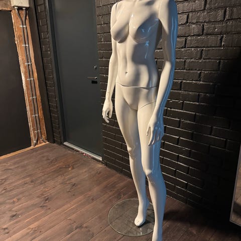Gjennomsiktig plast mannequin i form av en kvinnelig overkropp. Kan brukes til visning av klær eller til dekorative formål.