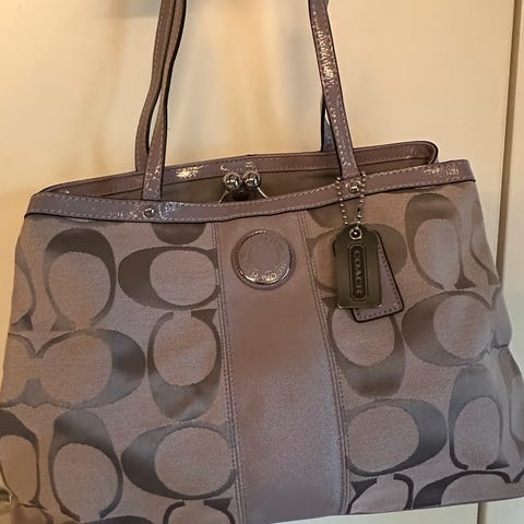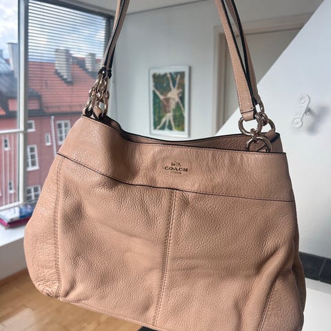 -Veldig søt vintage baby rosa Coach veske i suede skinn og god stand. Skulderstroppene kan justeres og vesken sin størrelse er 19x24cm.