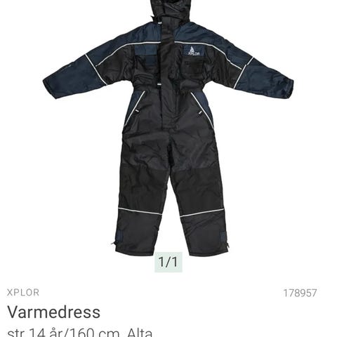 Varmedress str 12 år, den er revnet i søm på ene siden (se bilde) og har irr på knappene nederst da den har hengt kaldt. Men fortsatt mye bruk igjen. 80 kr +69 kr i frakt.