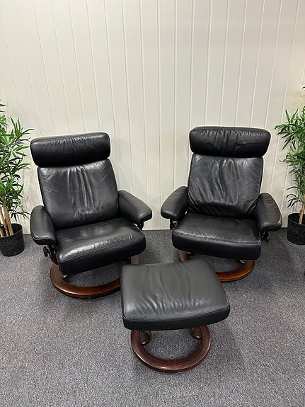 Vi har et stort salg av brukte Lenestoler.