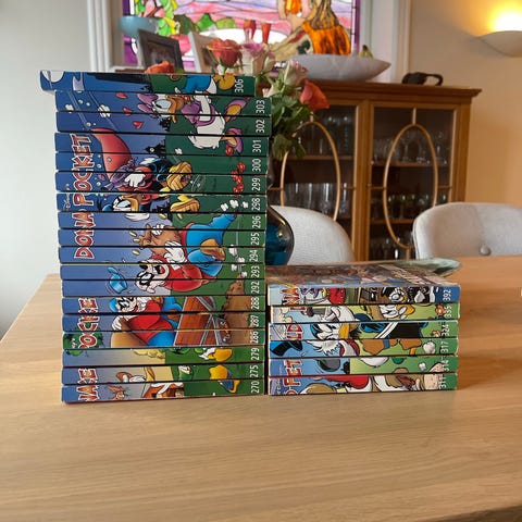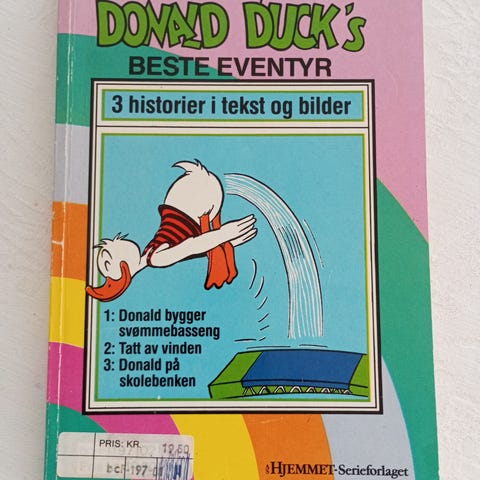 Donald Duck's Beste Eventyr tegneseriebok med 3 historier i tekst og bilder. Inneholder historiene: Donald bygger svømmebassenget, Tatt av vinden, og Donald på skolebenken. ISBN 82-7265-754-4.