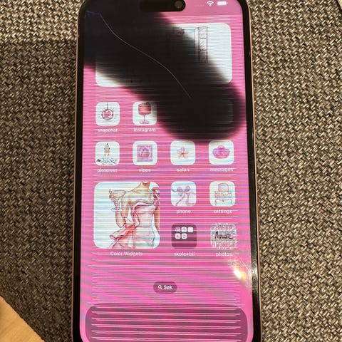 Apple iPhone 12 Pro mobiltelefon med 128 GB lagringskapasitet. Enheten har en blå farge og kommer med en skjerm som viser tegn på bruk. Baksiden av telefonen har betydelige sprekker i glasset.
