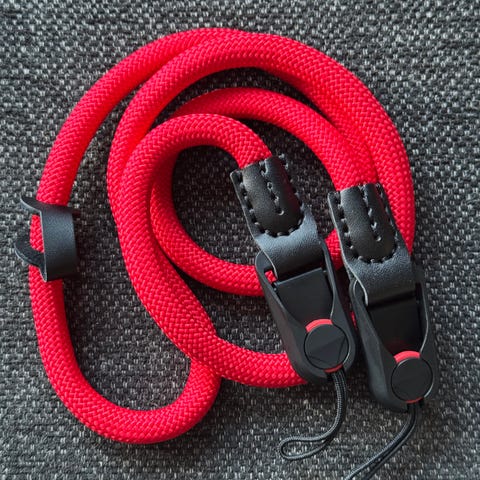En praktisk og pålitelig løsning for både analoge og digitale kameraer. Stroppen er laget av tett, men myk flettet snor. De myke materialene riper ikke kamerahuset og skader verken lakk eller metall, selv ved langvarig bruk.