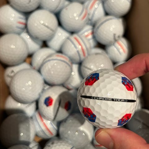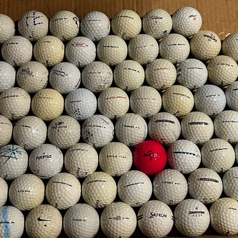 100 golfballer med bruksmerker og tusjmerker. Selges til 350kr pluss eventuell frakt.