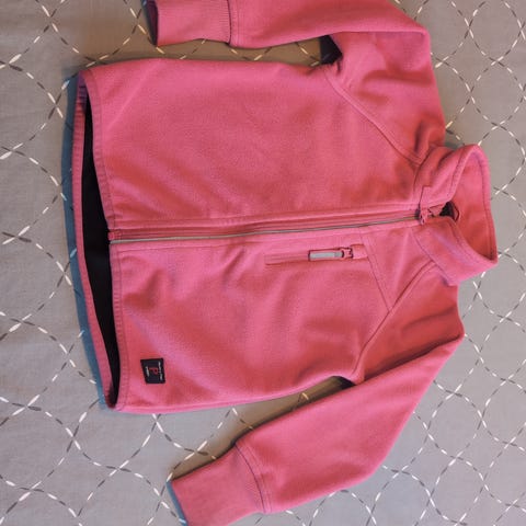 Cubus fleecedress i størrelse 98 for jente. Dressen har flerfarget mønster med hjerter og er laget av fleece-materiale. Den har hette, glidelås foran og lommer. Passer for barn i denne størrelsen.