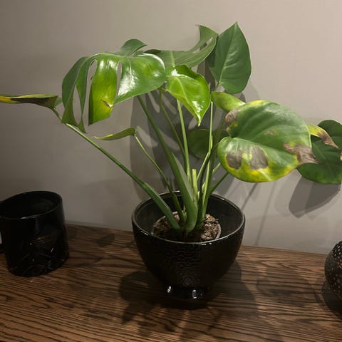 Denne planten trenger mye kjærlighet etter et angrep av trips. Den har mange flekker på bladene, men den er fortsatt vakker