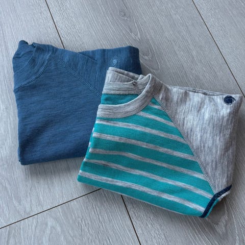 Selger 3 trøyer / gensere / ullundertøy i ull fra Pierre Robert. Kr 100 pr stk, selger samlet eller hver for seg. 2 ulike fargekombinasjoner, alle i blått. Pent brukt. Det første bildet viser 4 gensere, den med striper er solgt.