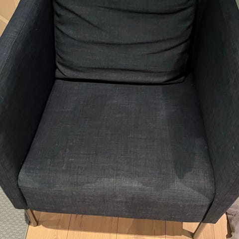Flott lenestol med fotskammel, lite brukt og i perfekt stand. Veldig komfortabel og passer godt i både stue og lesehjørne.