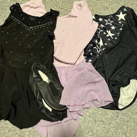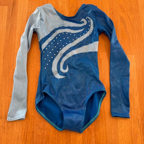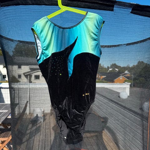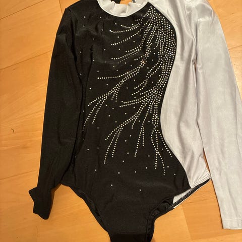Dansdrakt i størrelse 134 for barn. Draktene kommer i to farger, turkis og svart. 50kr pr drakt. Kan sendes.