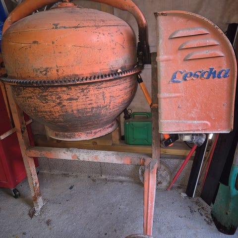 Lescha Euro-Mix 125 betongblander med kapasitet på 125 liter. Farge: oransje. Vekt: 54 kg. Effekt: 500 W, 50 Hz. Modell egnet for blanding av betong og lignende materialer. Pris kr 900,-