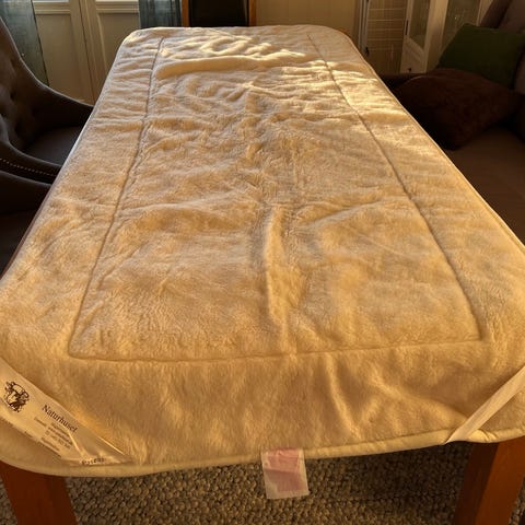 Madrassen er så godt som ubrukt, ble brukt madrassbeskytter under utprøving, og ligget innpakket i et skap i et par år etter det. Kan leveres i Trondheim og omegn om ønskelig.