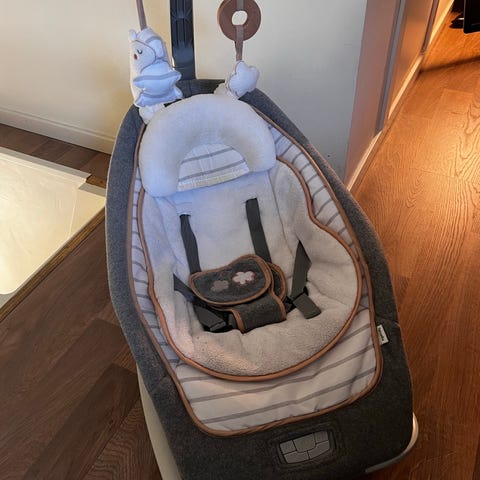 Vippestol med nyfødt innlegg. Brukt av et barn