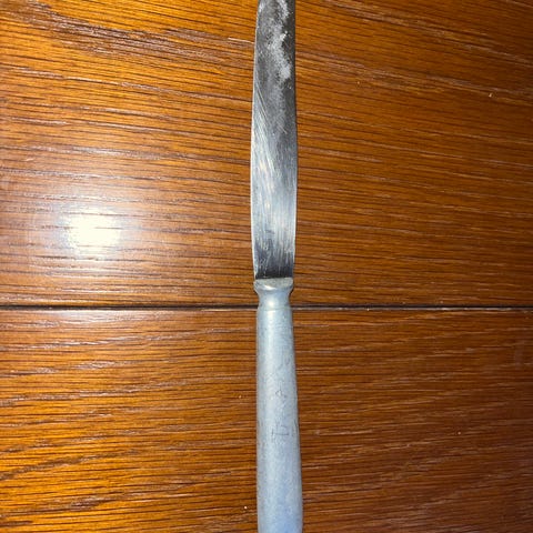 Metallplate med nummeret 1674292 preget på begge sider. Platen har fire hull og en midtskjøt. Materialet er metall, og platen har en slitt overflate.