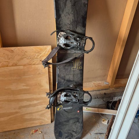 Selges pro flyer snowboard. Ene bindingen er ødelagt. Selges derfor billig, 250 kr. Må hentes på Hamresanden.