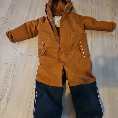 Kuling Val D'Isere vinterdress i farge burnt pink. Brukt av ett barn i bhg. Ett hull på foten (se bilde), og litt flekker, derfor redusert pris. Vil tro det lett kan fikses med tekstil lim da det er rette kanter på hullet. God og varm dress