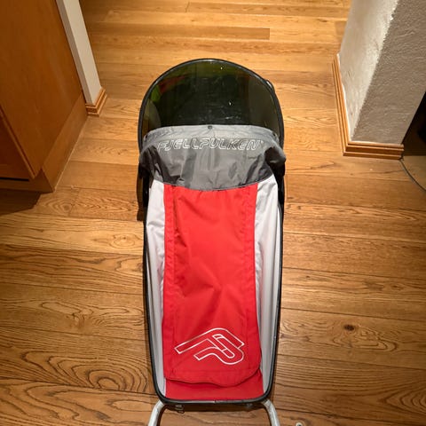 Følger med alt av utstyr som drag, sele og vindskjerm.
