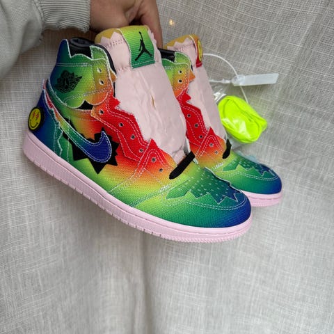 Travis Scott x Air Jordan sneakers, komfortable og perfekte til daglig bruk. Størrelse 10.5 PS. Boksen er åpnet, men skoene har aldri blitt brukt og de kommer med andre lisser som du kan bytte ut når du vil. Kommer også med klistre merke og forsikring om autentisitet. Perfekt til hverdagsbruk eller bruke som pynt for eksempel