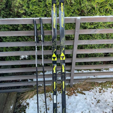 Skiene er brukt. Skiene er smørefri med riller under. Ca 100cm lange. Passer for ca 2-3år. Rottefellabinding.