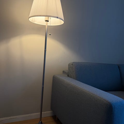 Flott sølv lampe med skjerm og pære
