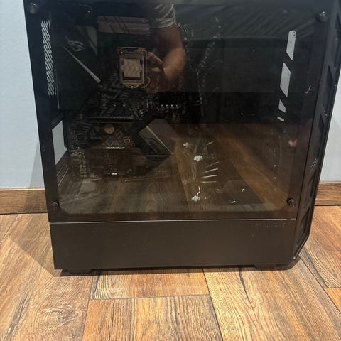 PC-kabinett med gjennomsiktig sidepanel og ventilasjon