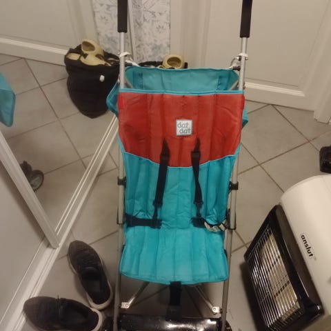 Barnevognen er enkel å slå sammen (paraply-sammenleggbar) og er praktisk for reiser, korte turer eller som en lett ekstra barnevogn. Den har doble hjul bak for økt stabilitet.