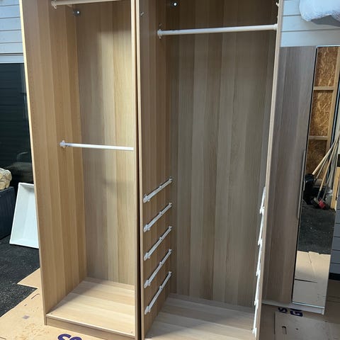 Pax (Hasvik?) skyvedører og Pax stamme selges pent brukt. Selger én stamme 100x58x236, med 2 (evt 3) hyller. Ferdig montert. Skyvedørene passer til Pax garderobe 200x58x236. De demonteres før henting. Bæres selv fra 2.etasje, heis rett ved døra, kan parkere ved utgang.