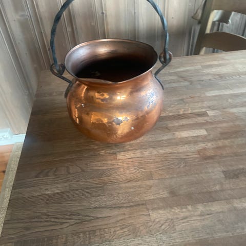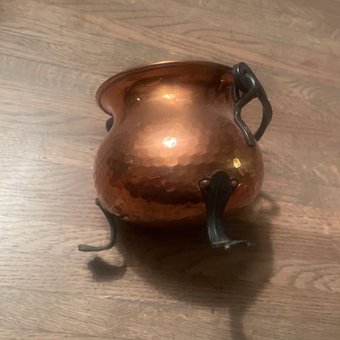Flott paraplyholder i kobber-Flott motiv/pynt.Fin stand,men noen merker,og kanten oppe må bøyes til litt.Men flott , denne-masse bruksområder,vi har brukt den til blomster ol.bud
