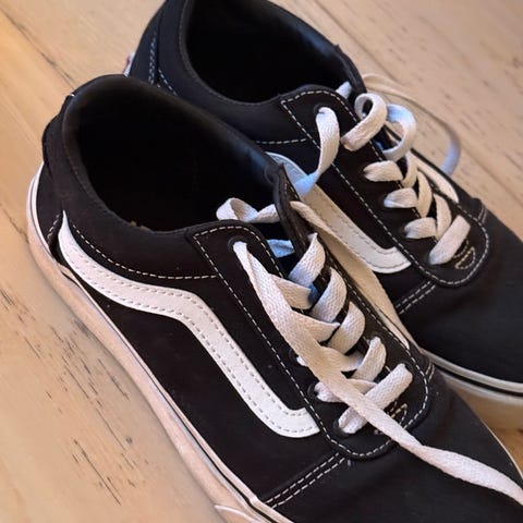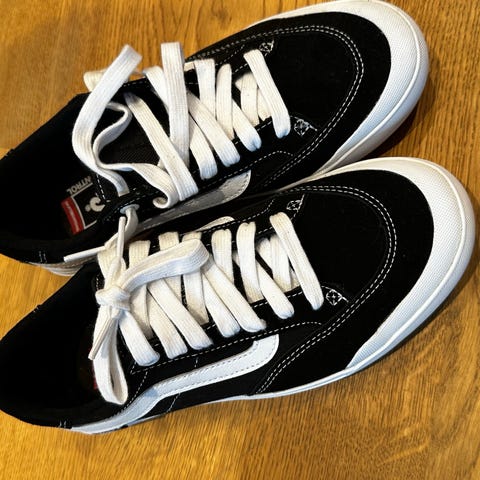 Vans unisex barne sko i svart og hvit farge. Skoene har snøring og gummisåle med karakteristisk mønster. Passer til barn, størrelse 40,5