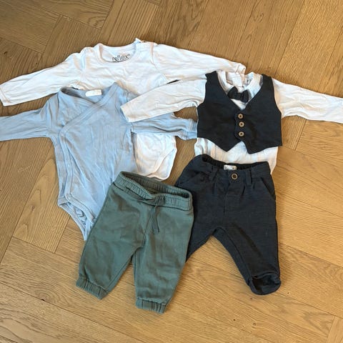 KappAhl, Hm, newbie barneklær for gutt i størrelse 62 68, blå og grå farge. Inkluderer flere plagg med forskjellige design og materialer, sparkedressen er i str 56, men den er stor i størrelsen, så tilsvarer 62. Klærne er veldig Lite brukt, står som helt nye!
