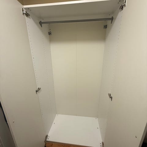 Tror det er gammle IKEA Faktum. Det er to skap, 60cm brede hver.