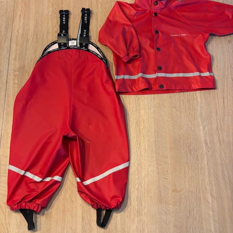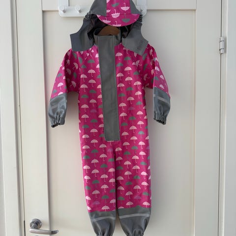 Pent brukt regndress fra miniature str 80 selges. Følger med tynnere lue i str 6/12 mnd