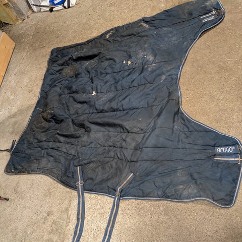 Noe solbleket og litt slitte borrelåser på halsen,eller i fin stand